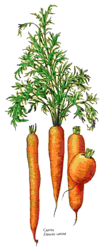 J. Crato descrisse nel suo trattato del 1591 l’importanza e l’efficacia delle carote in varie malattie. Altri medici usavano comunemente il succo nei casi di avvelenamenti. Voi mangiatele crude per avere bella pelle, riducetele in succo e prendetelo, con qualche goccia di limone, la mattina o come aperitivo. Quelle del vostro orto, senza concimi chimici, potete mangiarle senza grattare la pelle, solo spazzolandole: la parte esterna è la più preziosa perché contiene molte vitamine.