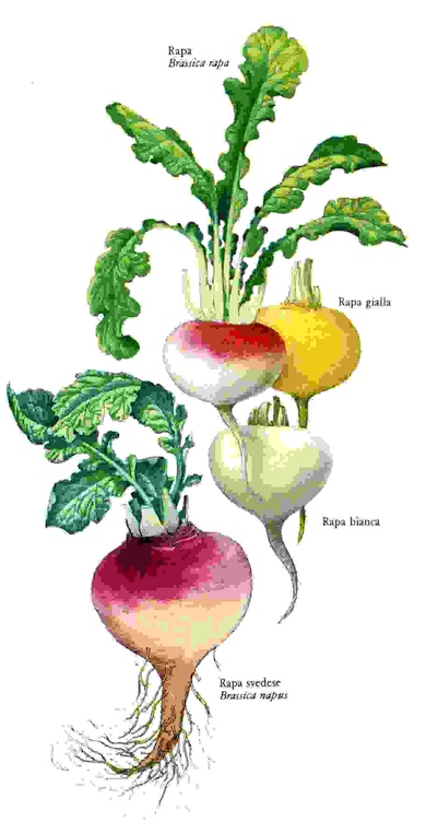 Originaria del Nord Europa, pare che la rapa sia stata una delle prime verdure note all’uomo primitivo che la mangiava cotta sotto la cenere. Teofrasto e Plinio la conoscevano e la preferivano al navone, ne preparavano zuppe e anche una specie di stufato. Plinio parla di colture molto estese di questo vegetale che oggi non gode certo buona fama e che invece va riabilitato. Provate la rapa cruda, tagliata a fettine sottili, condita con olio e limone.