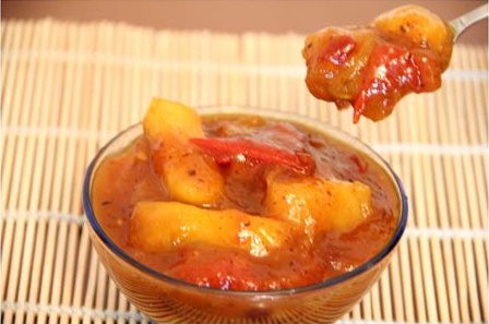 L’origine di queste saporitissime preparazioni è indiana. A importarle in Europa e a renderle un po’ più occidentali, per quanto riguarda il sapore, sono stati gli inglesi. A base di frutta o di verdura, o di frutta e verdura insieme, i chutney devono risultare, dopo la lunga cottura, morbidi e omogenei. Tra gli ingredienti non mancano mai lo zucchero e l’aceto e vi abbondano le spezie. Sono squisiti per accompagnare carni, formaggi, cacciagione, torte salate, e pesci che siano però di sapore deciso. Tutti i chutney, prima di essere consumati, devono riposare per un mese in un luogo fresco e buio.